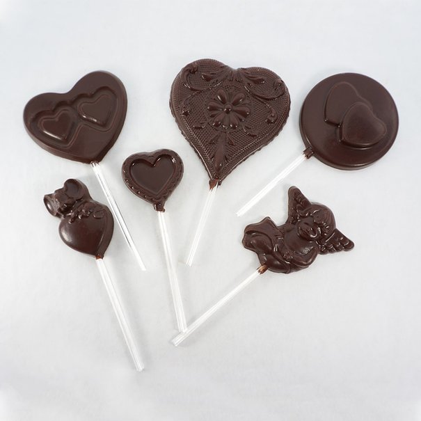 Dark chocolate : cocoa paste, sugar, cocoa butter, lecithin, vanilla flavouring. Milk chocolate : sugar, cocoa butter, milk powder, cocoa paste, lecithin, vanilla flavouring. White chocolate : sugar, cocoa butter, milk powder, lecithin, vanilla flavouring.