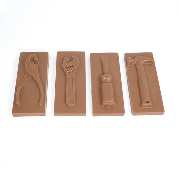 Dark chocolate : cocoa paste, sugar, cocoa butter, lecithin, vanilla flavouring. Milk chocolate : sugar, cocoa butter, milk powder, cocoa paste, lecithin, vanilla flavouring. White chocolate : sugar, cocoa butter, milk powder, lecithin, vanilla flavouring.